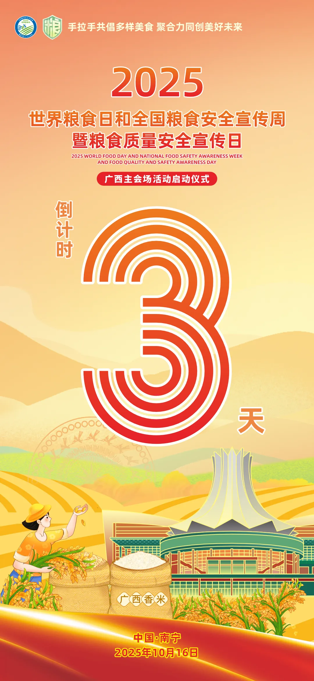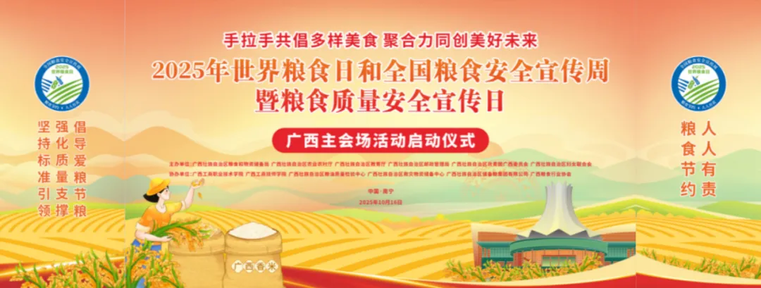 粮食安全是“国之大者”。随着第45个世界粮食日的临近,一场盛大的宣传活动即将在南宁拉开帷幕。为深入宣传国家粮食安全战略,并展示广西粮油产品的卓越品质,由广西壮族自治区粮食和物资储备局、农业农村厅、教育厅、邮政管理局以及共青团广西委员会、广西壮族自治区妇女联合会联合主办,多家单位协办的2025年世界粮食日和全国粮食安全宣传周暨粮食质量安全宣传日广西主会场活动,将于10月16日上午在南宁市民族广场盛大启幕。