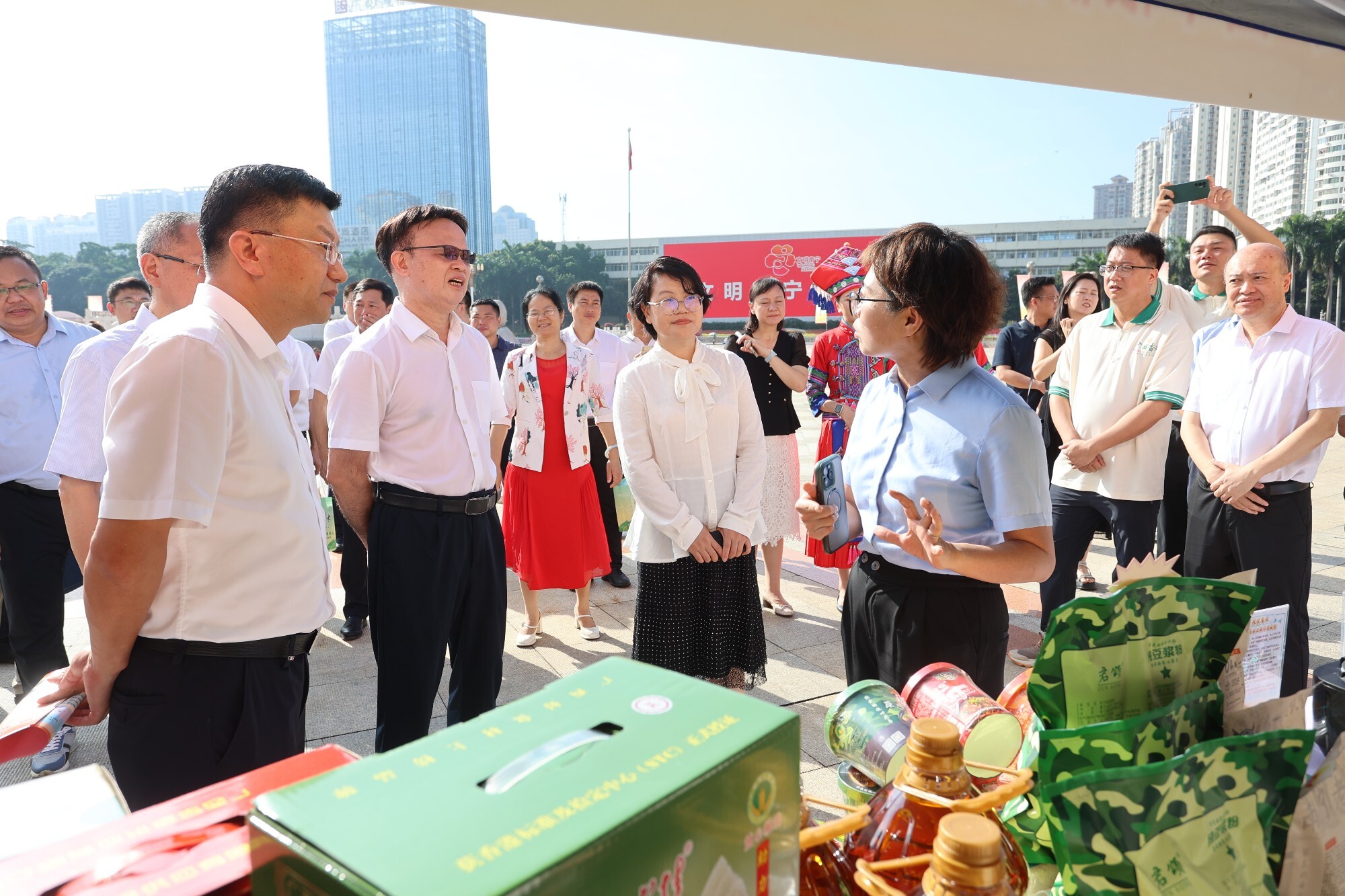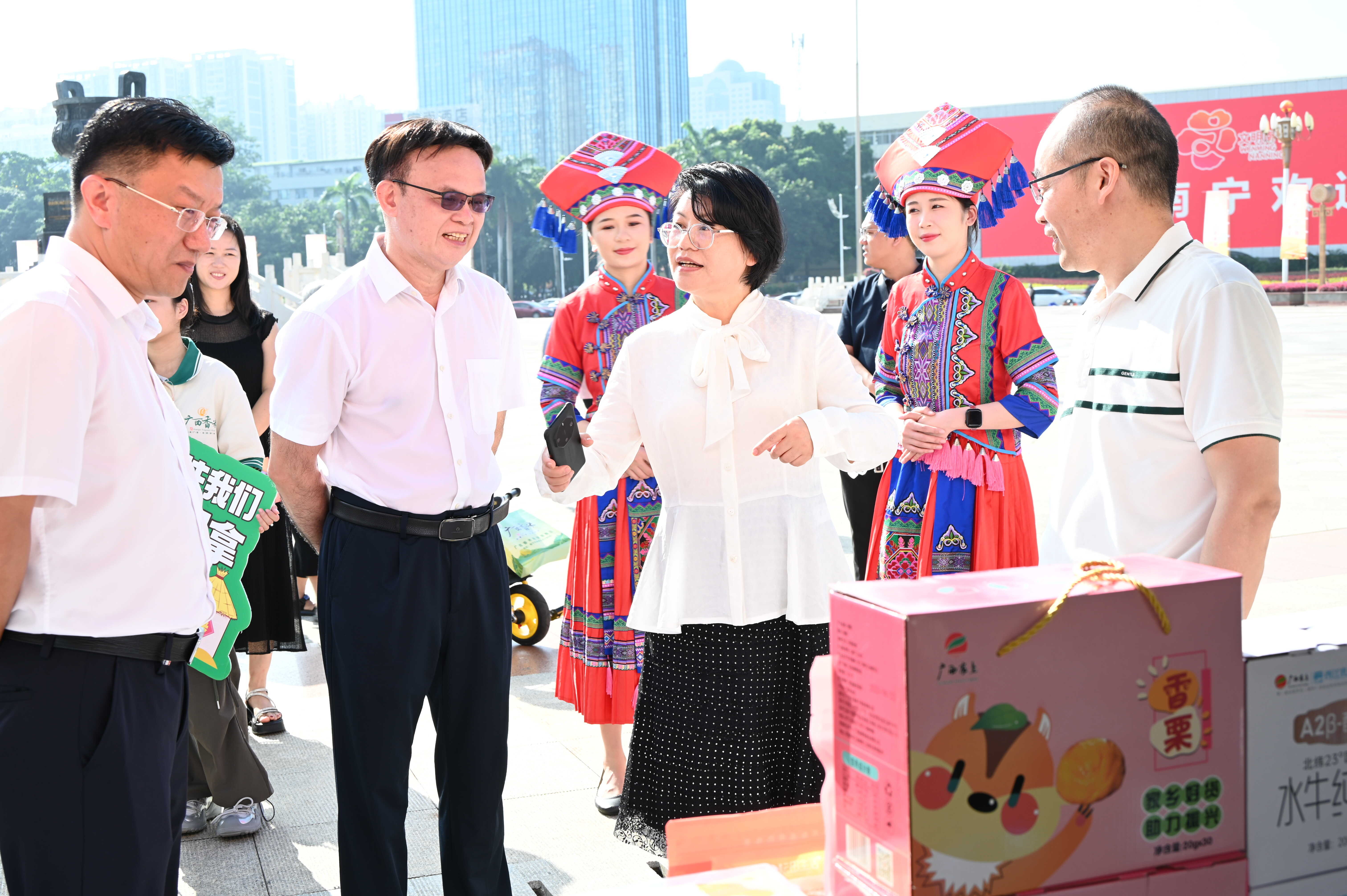 在活动启动仪式上,自治区发展改革委党组成员,一级巡视员,自治区粮食和物资储备局党组书记、局长许瑾;自治区农业农村厅党组成员、副厅长韦波;自治区妇联党组成员、副主席朱玉红;广西邮政管理局党组成员、纪检组组长、副局长莫祖俊;南宁海关总检验师张潇;自治区发展改革委二级巡视员李新勤;自治区教育厅二级巡视员农汉康;自治区自然资源厅二级巡视员杨健;共青团广西区委常委、二级巡视员刘宇红;广西粮食行业协会会长林愈溪共同登台,宣布活动正式启动。