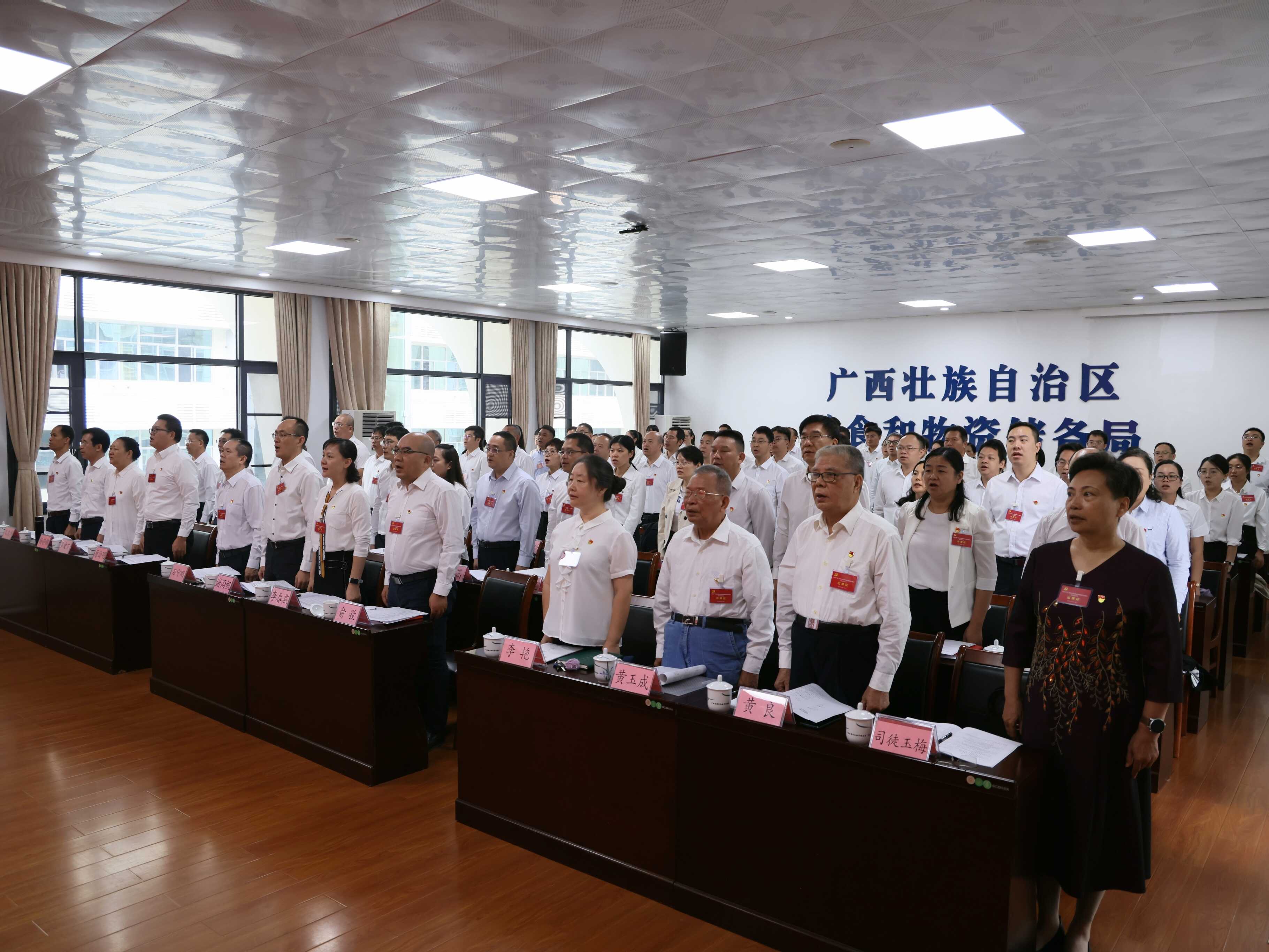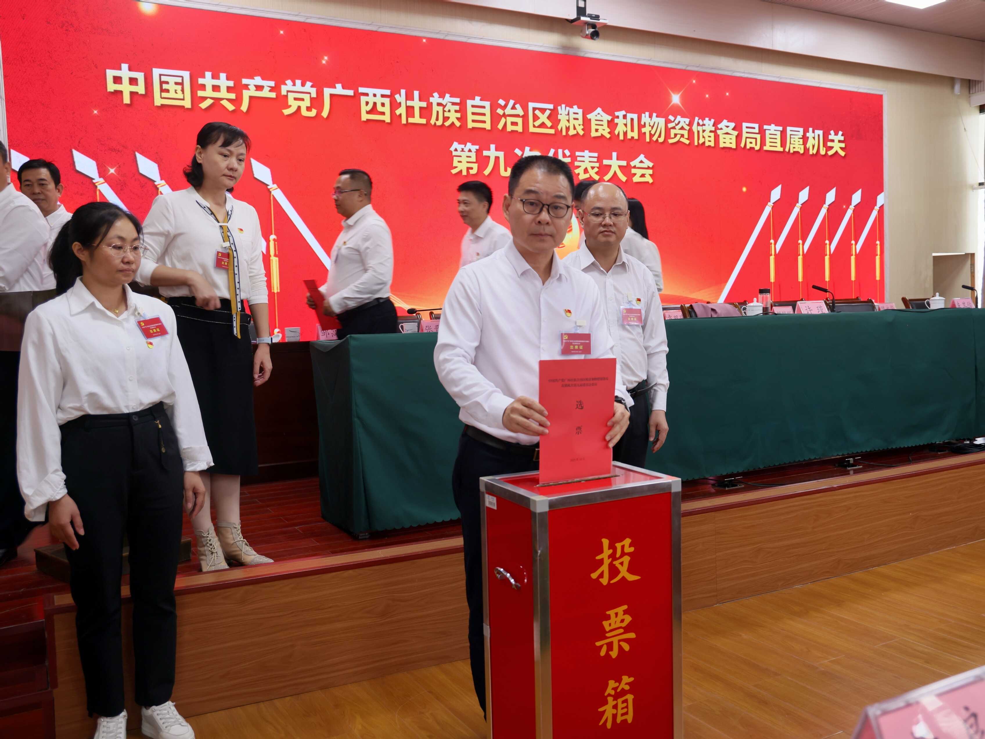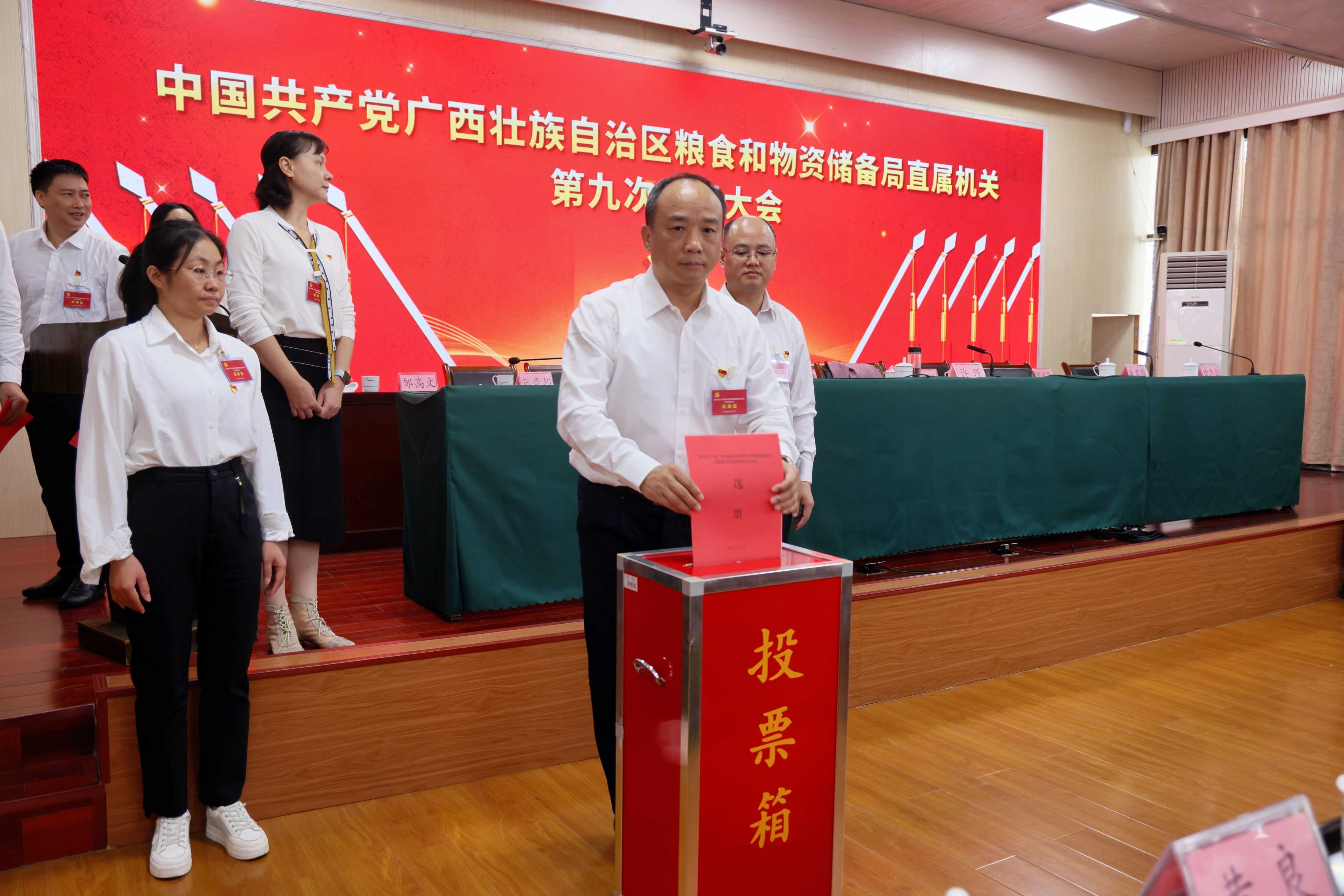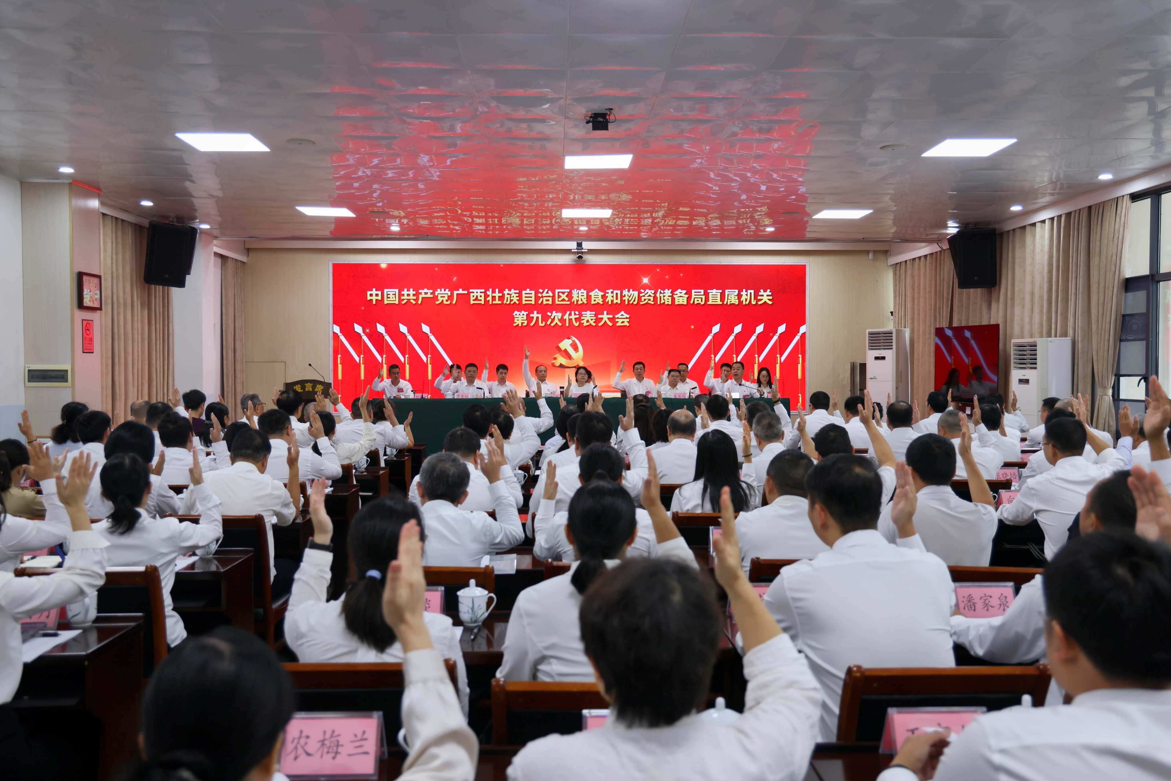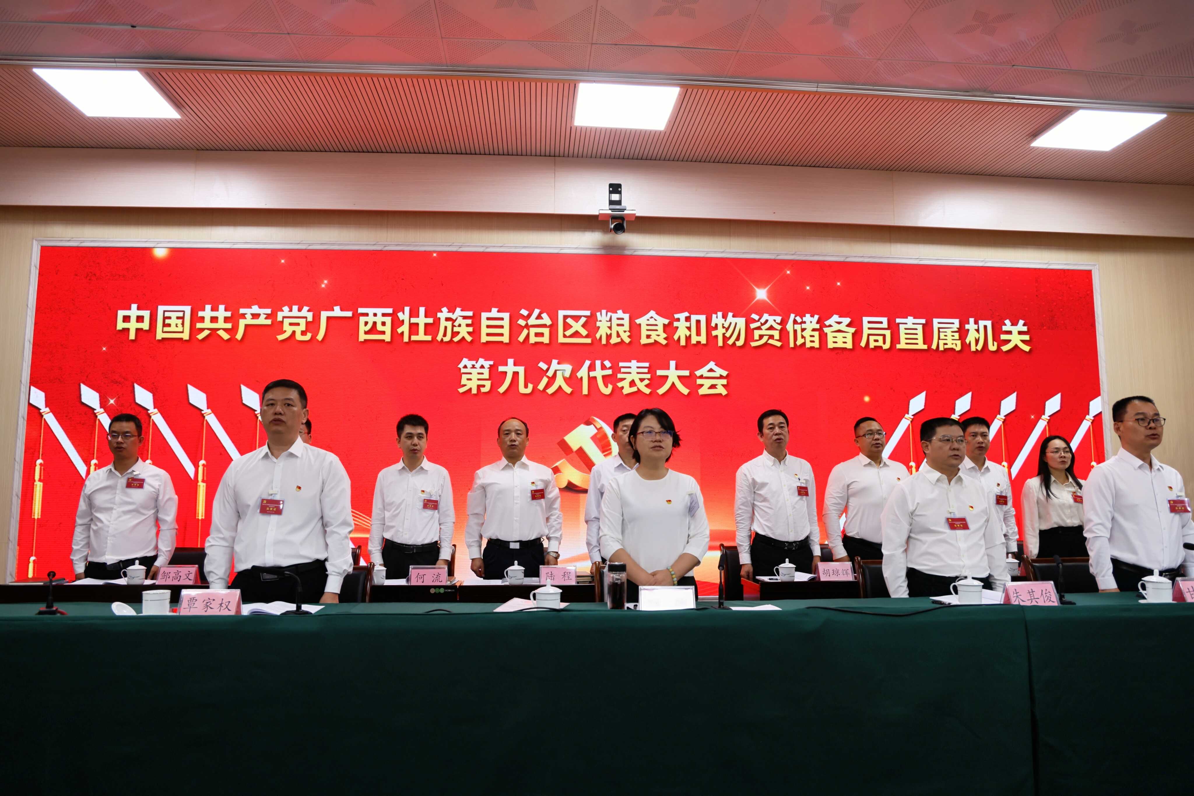 大会在庄严的《国际歌》声中圆满闭幕。会后,中共广西壮族自治区粮食和物资储备局直属机关第九届委员会和纪律检查委员会召开第一次全体会议,选举产生第九届直属机关党委书记、专职副书记、副书记和机关纪委书记、副书记。