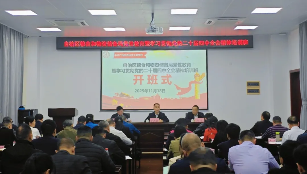 11月17日,自治区粮食和物资储备局党性教育暨学习贯彻党的二十届四中全会精神培训班在自治区直属机关工委党校开班。自治区粮食和物资储备局党组成员、副局长甘志新出席培训班开班式并作动员讲话。