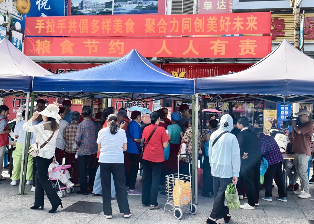 “手拉手共倡多样美食,聚合力同创美好未来”“粮食节约 人人有责”,悬挂在活动现场的两条红色标语格外引人注目,生动活泼的宣传板报同样引起过往群众的关注,板报上介绍的粮食安全储存方法、家庭节约小妙招深受群众喜爱,有的群众还拿起手机拍照留存。