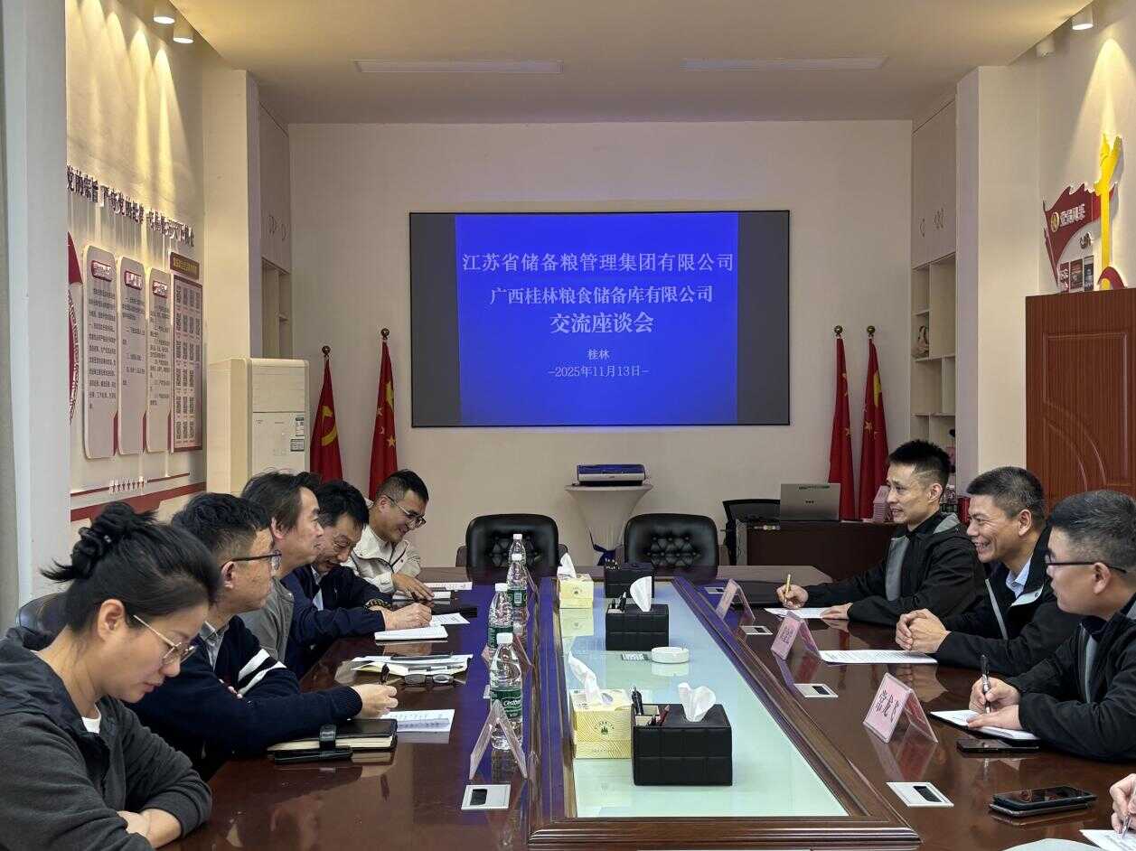11月13日,江苏省储备粮管理集团有限公司一行专程到广西壮族自治区桂林粮食储备库有限公司(以下简称桂林粮库公司)考察学习“3万吨准低温高深平房仓绿色储粮技术体系”项目。考察组实地查看了仓房结构、制冷系统、通风地槽及智能控制中心,并就工艺细节、成本控制和持续优化经验与桂林粮库公司技术人员开展深入交流,对该项目的创新理念与实践成效给予高度评价。考察组表示,桂林粮库公司在有限用地条件下实现仓容最大化与运营低碳化的系统解决方案,具有较强的示范意义和推广价值,为同类地区粮库升级改造提供了有益参考。