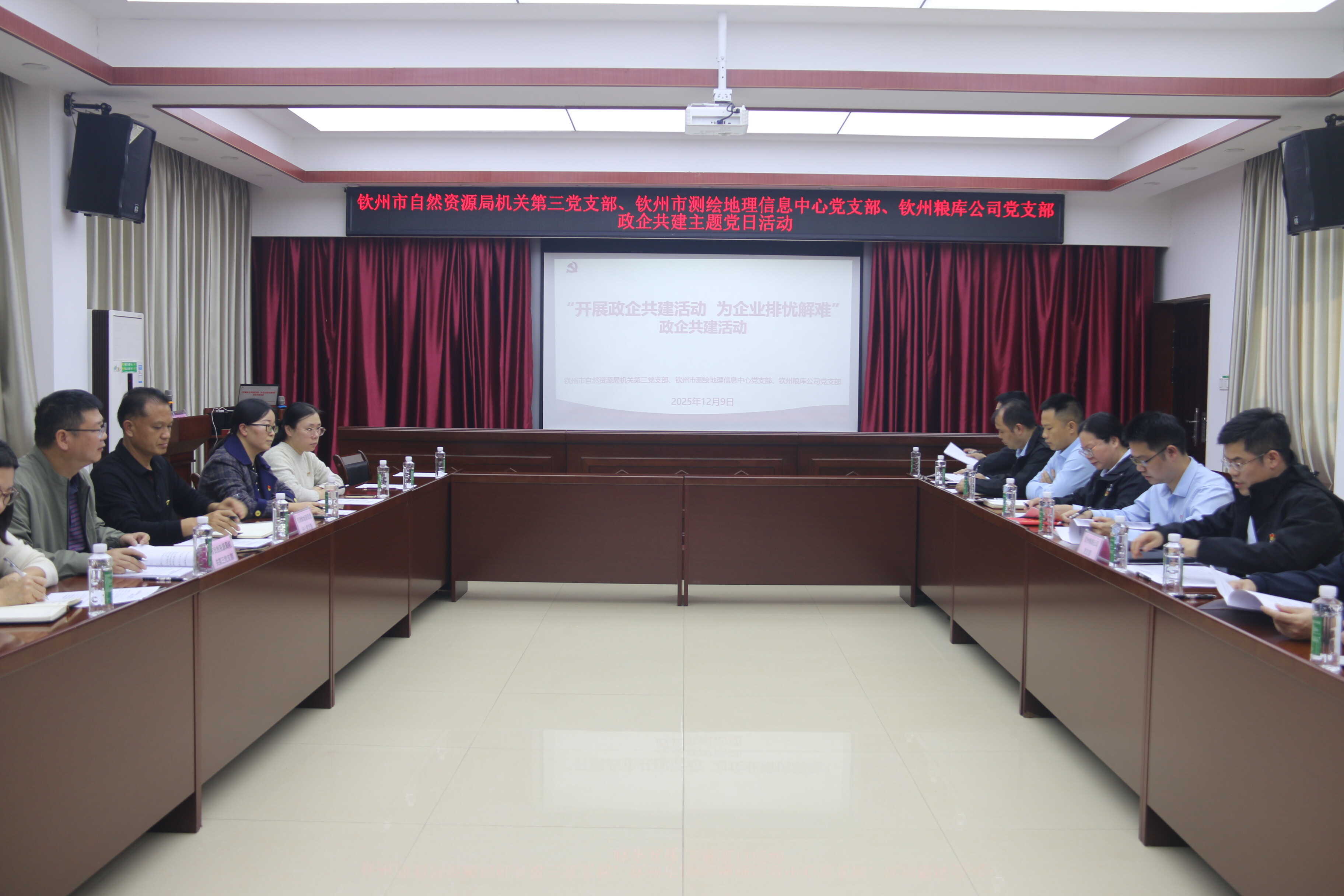 12月9日,广西壮族自治区钦州粮食储备库有限公司(以下简称钦州粮库公司)党支部、钦州市自然资源局机关第三党支部和钦州市测绘地理信息中心党支部在钦州粮库公司联合举办“开展政企共建活动、为企业排忧解难”主题党日活动。