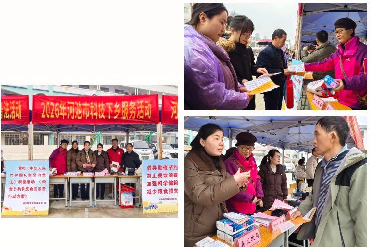 2月5日,由中共河池市委员会宣传部、市精神文明建设办公室联合主办,河池市发展改革委、市农业农村局等14家市直机关单位联合协办的2026年河池市文化科技卫生“三下乡”活动在南丹县月里中学隆重举行。南丹县发展和改革局、粮食和物资储备局、科技局等单位组成联合工作组,将科学储粮技术、节粮理念送到农户身边,为保障粮食安全、助力乡村振兴注入科技力量。