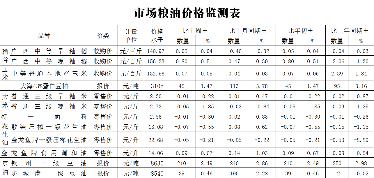 广西市场粮油价格周报表(2026年第2期)