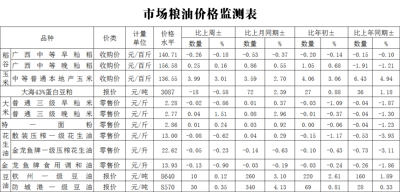 广西市场粮油价格周报表(2026年第3期)